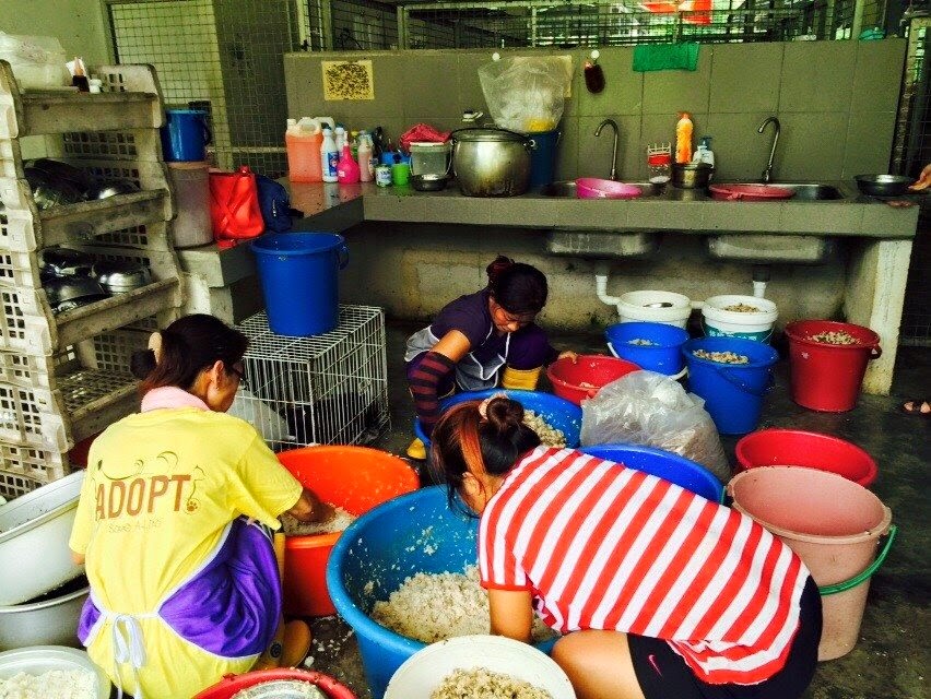 Volunteers were at shelter cooking up a feast for the furkids on Labor Day. Here as shown in the 2 photos below, they were busy preparing the all time favourite - Yummy Chicken Rice (Second Chance Style)