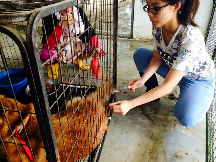 Dr. Au of VPAC has a tough time trying to get our Subang, Roger, Jackie and other senior dogs to be vaccinated. Thanks Dr. Au for the great effort!